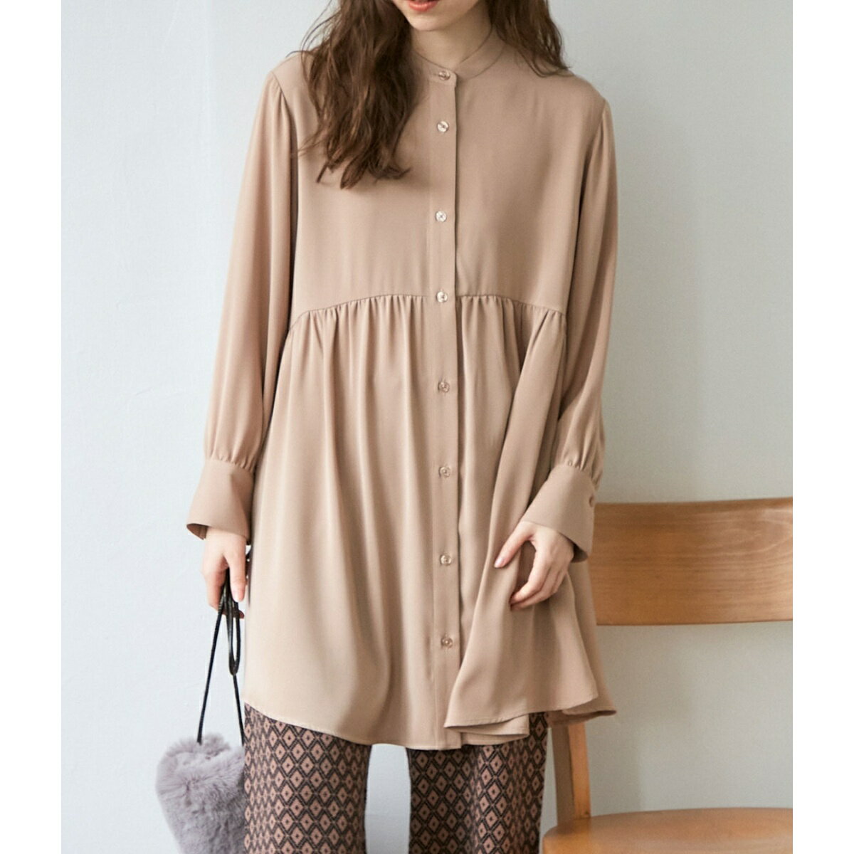 「L」パウダーポプリンスタンドカラーシャツ/アンタイトル