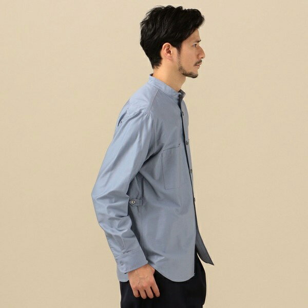 バックサテン生地のスタンドカラーシャツが登場!!高密度に織り上げたバックサテンを使用したスタンドカラーシャツです。